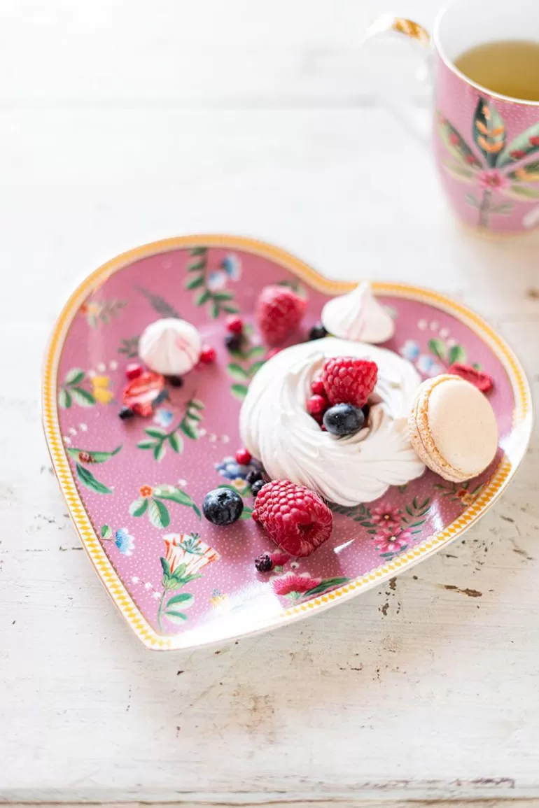 Vul Je Servies Aan Met Deze Set Van Twee Hartvormige Borden Van 21.5 Cm. Deze Borden Hebben Een Roze En Witte Achtergrond En Zijn Versierd Met Het Vrolijke La Majorelle Dessin. Dit Dessin Bestaat Uit Een Exotische Palmboom Waar Twee Reigers Omheen Zijn Gedecoreerd. Daarnaast Bestaat Het Dessin Uit Elegant Geplaatste Bloemen. De Rand Van Het Bord Is Versierd Met Roze Met Witte Strepen En Geven Het Bord Een Rijke Uitstraling. Met Ons La Majorelle Porselein Zul Je Jouw Servieskast En Tafel Laten Stralen!