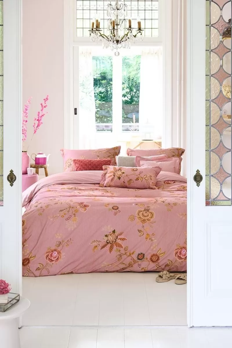 Het Roze Cece Fiore Overtrek Bevat Grote En Rijk Versierde Fantasiebloemen Waardoor Je Een Een Prachtig Bloemendessin In Huis Haalt. Het Overtrek En De Kussens Hebben Een Doorgestikte Oxford Rand Aan De Zijkanten En Zijn Afgewerkt Met Een Gekleurde Bies, Wat Een Luxe Uitstraling Geeft. De Kussenslopen Hebben Een Gestoffeerde Knoopsluiting En Net Als Het Overtrek Twee Verschillende Kanten. Beide Kan Je Tweezijdig Gebruiken En Hiermee Een Speels Mix & Match Effect Op Je Bed Creeeren.