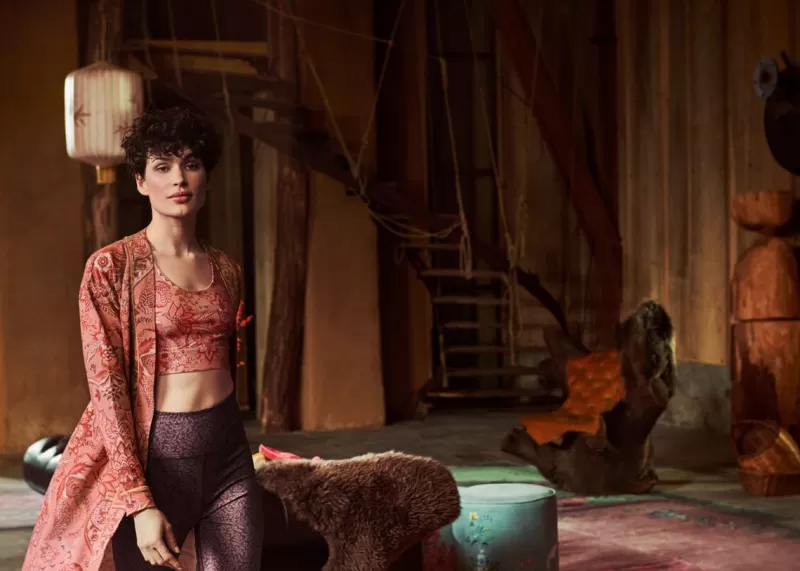 Deze Lange Sportlegging In Het Terra Rood Is Uitgevoerd Met Het Elegante Leafy Dots Dessin. Het Herhaalde Dessin Is Opge…